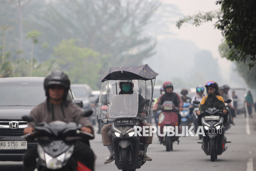 REPUBLIKA.CO.ID, PONTIANAK -- Sejumlah pengendara motor melintasi jalan yang diselimuti kabut asap di Pontianak, Kalimantan Barat, Kamis (5/3/2026).