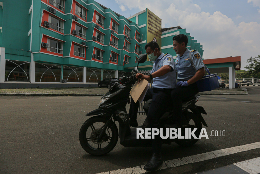 Petugas dari Kementerian Kesehatan melakukan uji sample tempat pembuangan sampah di Asrama Haji Pondok Gede, Jakarta, Senin (13/4/2026). Pemeriksaan kesehatan tersebut meliputi area aula, ruang kesehatan, kamar hingga tempat pembuangan sampah yang dilakukan sebanyak dua kali yakni pada H-6 bulan dan H-1 minggu sebelum digunakan oleh jamaah haji untuk memastikan kelayakan yang ditinjau dari aspek kesehatan, sehingga dapat meminimalisir potensi penyakit. (FOTO : Republika/Thoudy Badai)