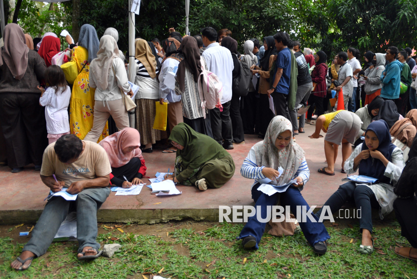 REPUBLIKA.CO.ID, MEDAN -- Sejumlah warga antre untuk mendaftar mudik gratis Lebaran 2026 di Taman Ahmad Yani, Medan, Sumatera Utara, Senin (2/3/2026).