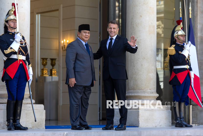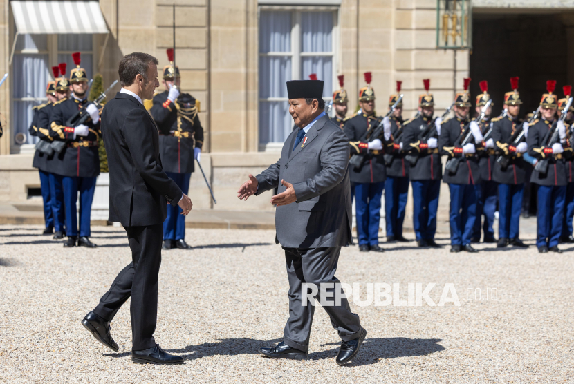 REPUBLIKA.CO.ID, PARIS -- Presiden Prabowo Subianto disambut Presiden Prancis Emmanuel Macron saat bertemu di Istana Elysee, Paris, Prancis, Selasa (14/4/2026).