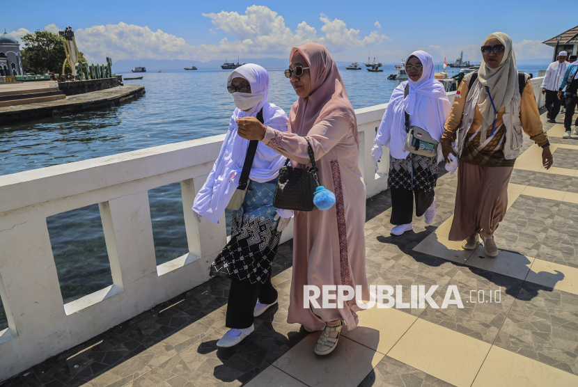 REPUBLIKA.CO.ID, TERNATE -- Petugas membantu calon haji turun dari speedboat saat tiba di Pelabuhan Residen Ternate, Maluku Utara, Selasa (28/4/2026).