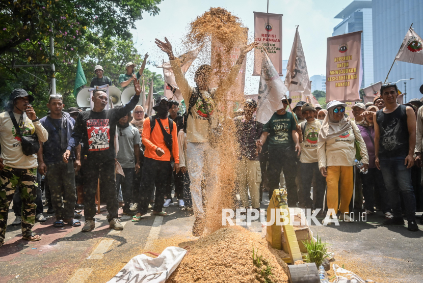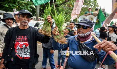 REPUBLIKA.CO.ID, JAKARTA -- Pengunjuk rasa melakukan aksi Hari Pangan Sedunia di Jalan Medan Merdeka Selatan, Jakarta, Kamis (16/10/2025).