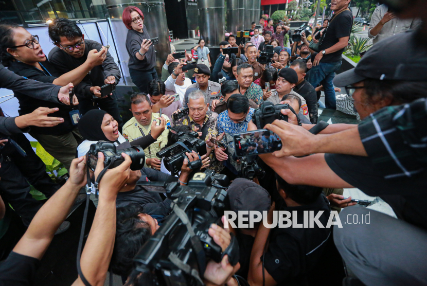 Mantan Gubernur Jawa Barat Ridwan Kamil menjawab pertanyaan wartawan usai menjalani pemeriksaan di Gedung Merah Putih KPK, Jakarta, Selasa (2/12/2025). Ridwan Kamil diperiksa KPK selama enam jam untuk dimintai keterangan sebagai saksi dalam kasus dugaan tindak pidana korupsi pengadaan iklan di Bank Pembangunan Daerah Jawa Barat dan Banten (Bank BJB). (FOTO : Republika/Thoudy Badai)
