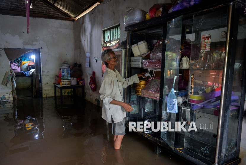 Warga menyelamatkan barang berharga saat banjir di Desa Pasir Ampo, Kresek, Kabupaten Tangerang, Banten, Selasa (20/1/2026). Banjir akibat luapan Sungai Cidurian setinggi 30-80 cm yang merendam sebanyak 185 rumah sejak sepekan terakhir tersebut membuat warga kesulitan mendapatkan akses air bersih dan mulai terserang penyakit seperti gatal-gatal, kutu air serta demam. (FOTO : ANTARA FOTO/Putra M. Akbar)
