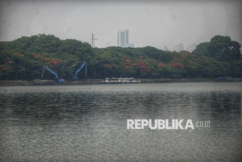 Suasana Area Waduk Cincin, Jakarta,Senin (1/12/2025). Waduk Cincin memiliki peran penting sebagai pengendali banjir dengan menampung limpasan air di Jakarta Utara, terutama dari kawasan padat penduduk. (FOTO : Republika/Prayogi)