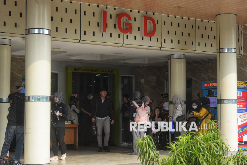 Suasana di RSUD Bekasi, Jawa Barat, Selasa (28/4/2026). RSUD Kota Bekasi mencatat sebanyak 17 orang korban kecelakaan KRL dan kereta api jarak jauh Argo Bromo Anggrek di stasiun Bekasi Timur masih menjalani perawatan intensif dan rawat inap. Para korban rata-rata menderita luka patah tulang (fraktur) yang memerlukan tindakan operasi serta luka memar serius di berbagai bagian tubuh. (FOTO : Republika/Prayogi)
