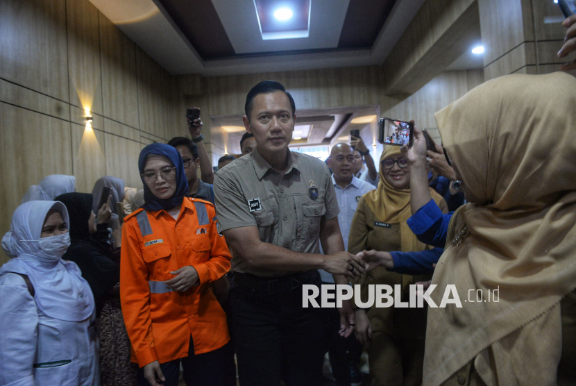 Menko Bidang Infrastruktur dan Pembangunan Kewilayahan Agus Harimurti Yudhoyono saat menjenguk korban kecelakaan kereta api di RSUD Bekasi, Jawa Barat, Selasa (28/4/2026). RSUD Kota Bekasi mencatat sebanyak 17 orang korban kecelakaan KRL dan kereta api jarak jauh Argo Bromo Anggrek di stasiun Bekasi Timur masih menjalani perawatan intensif dan rawat inap. Para korban rata-rata menderita luka patah tulang (fraktur) yang memerlukan tindakan operasi serta luka memar serius di berbagai bagian tubuh. (FOTO : Republika/Prayogi)