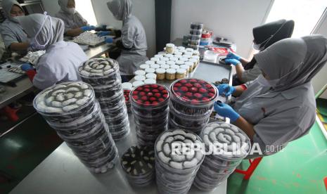 REPUBLIKA.CO.ID, BANDUNG -- Pekerja menyelesaikan produksi kue kering di pabrik kue J&C Cookies, Cimenyan, Kabupaten Bandung, Jawa Barat, Jumat (6/3/2026).