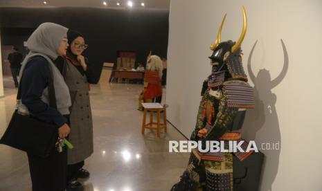Pengunjung mengamati baju zirah samurai pada kegiatan Lets Try Experience of Being a Samurai di Museum Nasional Indonesia, Jakarta, Sabtu (29/11/2025). (FOTO : Republika/Prayogi)