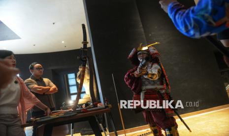 Pengunjung pameran dapat merasakan pengalaman menjadi samurai.