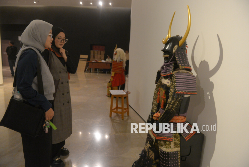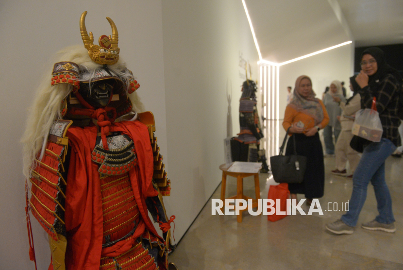 Pengunjung mengamati baju zirah samurai pada kegiatan Lets Try Experience of Being a Samurai di Museum Nasional Indonesia, Jakarta, Sabtu (29/11/2025). Dalam kegiatan tersebut, pengunjung dapat merasakan pengalaman menjadi samurai melalui lokakarya yang menarik mengenai budaya Jepang, mulai dari mempelajari gerakan dasar katana, mencoba replika zirah, hingga memainkan permainan tradisional jepang. (FOTO : Republika/Prayogi)