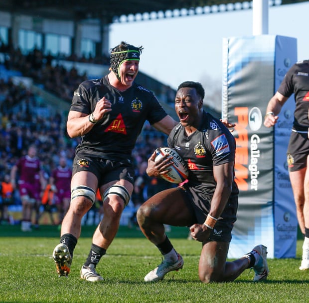 Exeter maintained their chase for a Prem playoff place with a hard-fought 26-14 victory over Sale. The Chiefs leapt up into third, ahead of Leicester and Bristol, who play each other on Sunday. Sale put up a great fight but their day was marred when their replacement prop WillGriff John was carried off on a stretcher six minutes from time.