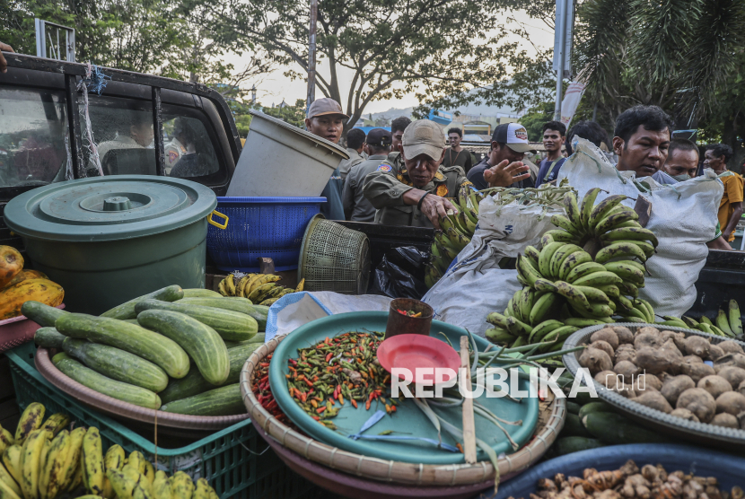 Petugas Satpol PP menyusun barang jualan pedagang ke atas mobil yang berjualan di area parkir saat penertiban di Pasar Higienis, Ternate, Maluku Utara, Selasa (21/4/2026). Penertiban tersebut bertujuan untuk mengembalikan fungsi area lahan parkir di kawasan Pasar Higienis dan meminta pedagang masuk ke dalam pasar yang telah disediakan Pemerintah Kota Ternate. (FOTO : ANTARA FOTO/Andri Saputra)