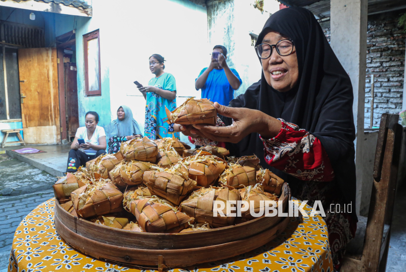 Seorang warga menyiapkan ketupat taoge sebelum dibagikan secara umum dalam tradisi Syawalan di Kampung Pedurungan Tengah, Semarang, Jawa Tengah, Sabtu (28/3/2026). Tradisi turun temurun yang diadakan sejak tahun 1950-an dengan membagikan ketupat berisi sayuran taoge dan uang sedekah kepada masyarakat umum tersebut untuk merayakan serta menjaga tradisi Syawalan usai merayakan Idul Fitri 1447 Hijriah sekaligus sebagai upaya menjaga kerukunan dan gotong royong antarwarga setempat. (FOTO : ANTARA FOTO/Makna Zaezar)
