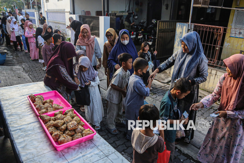 REPUBLIKA.CO.ID, SEMARANG -- Sejumlah warga membagikan ketupat taoge kepada anak-anak dalam tradisi Syawalan di Kampung Pedurungan Tengah, Semarang, Jawa Tengah, Sabtu (28/3/2026).